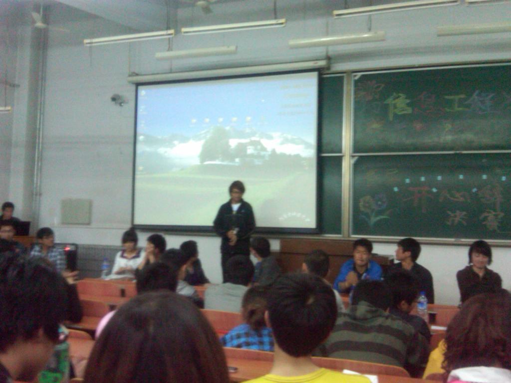 由院学生会学习部主办的信息工程学院首届“开心辞典”大赛决赛于2011年4月22日晚在文馨书院C102拉开帷幕。大赛以班级为单位,每班派出两人(一组)参加初赛(2011年4月9日晚),全院共有六组参赛选手在初赛中代表班级脱颖而出,晋级决赛。