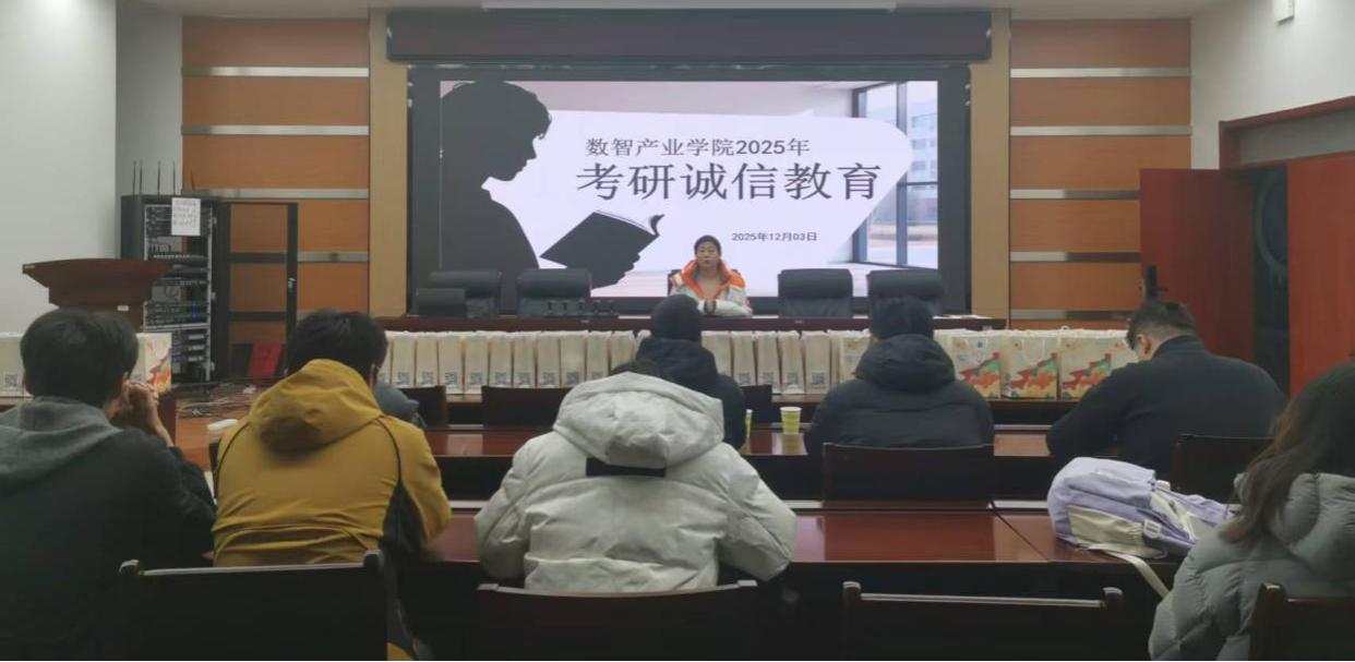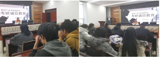 为进一步严肃考风考纪,营造优良学风,推动诚信考试观念入脑入心,12月3日上午9:30,数智产业学院在逸夫楼F302会议室召开考研诚信教育主题活动。学院党委副书记兼副院长陈伟、辅导员李惠娟,以及全体备战考研的22级学生们参加了此次活动。