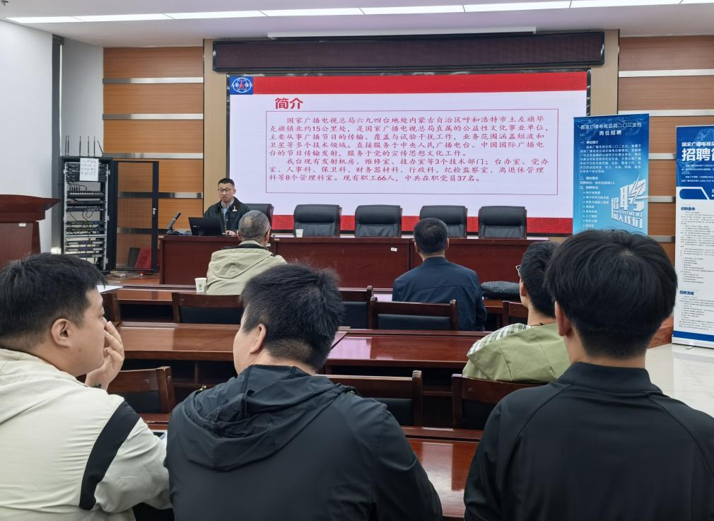 4月15日上午10:30,国家广播电视总局二〇二五台与六九四台联合专场宣讲会在内蒙古科技大学数智产业学院隆重举行。二〇二五台罗台长、人事科崔晶晶科长,六九四台高台长、人事科刘斌科长共同出席,众多毕业生积极参会。