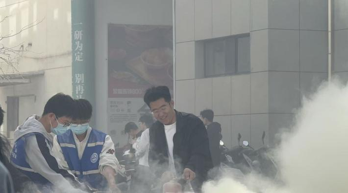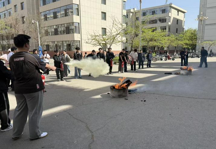 模拟演练结束后,消防人员针对灭火器进行专项讲解。通过现场展示器材结构、拆解操作流程,清晰说明灭火器的适用场景、“提、拔、握、压”核心使用步骤及日常检查维护要点,强调遇到火情需镇定,牢记“一晃,二拉,三压,四喷”的要领,掌握正确的使用方法。在总指挥的指导下,在场同学们纷纷上前体验灭火器的操作方法,现场进行了灭火演练。